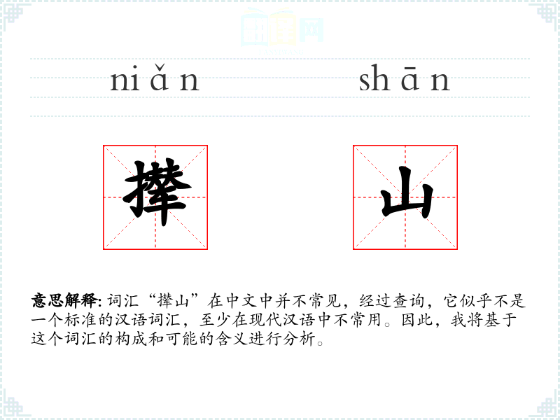 由于“撵山”不是一个常用词汇,它在不同语境下的使用可能非常有限。如果存在,它可能出现在某些特定的文学作品或方言中,用以形容某种强烈的动作或决心。