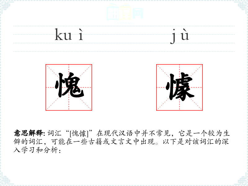 词汇“[愧懅]”在现代汉语中并不常见,它是一个较为生僻的词汇,可能在一些古籍或文言文中出现。以下是对该词汇的深入学*和分析: