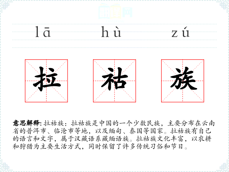 同义词:拉祜人(指拉祜族的个体) 反义词:(最大的民族,与拉祜族相对)