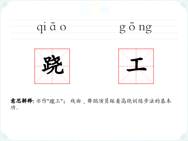 亦作"躥工"; 戏曲﹑舞蹈演员踩着高跷训练步法的基本功。