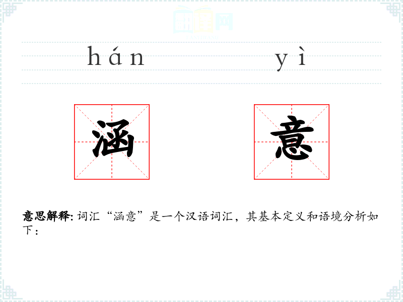 词汇“涵意”是一个汉语词汇,其基本定义和语境分析如下: