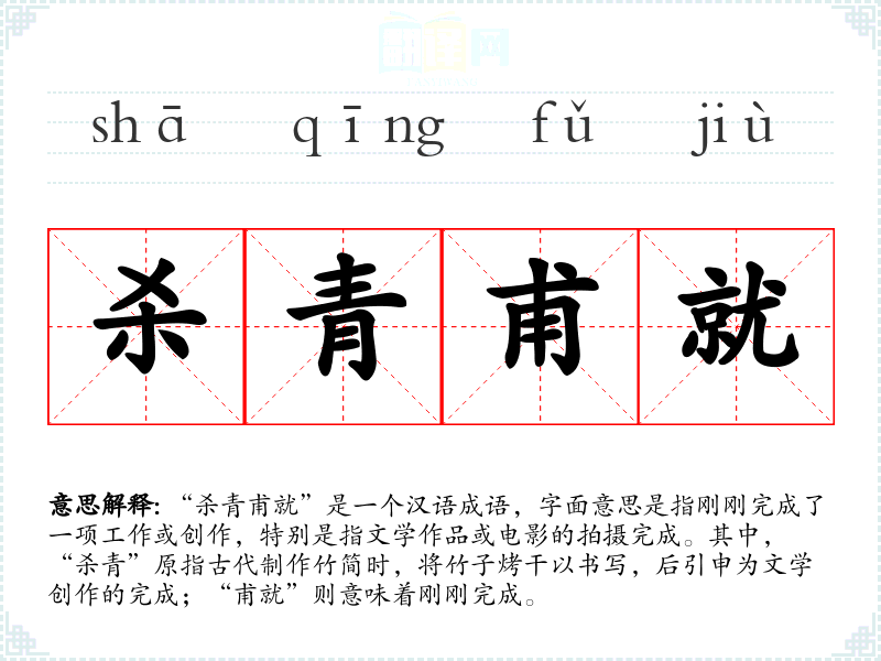 "杀青甫就"的意思解释、杀青甫就是什么意思由翻译网汉语词典查词提供。