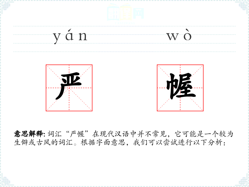 词汇“严幄”在现代汉语中并不常见,它可能是一个较为生僻或古风的词汇。根据字面意思,我们可以尝试进行以下分析: