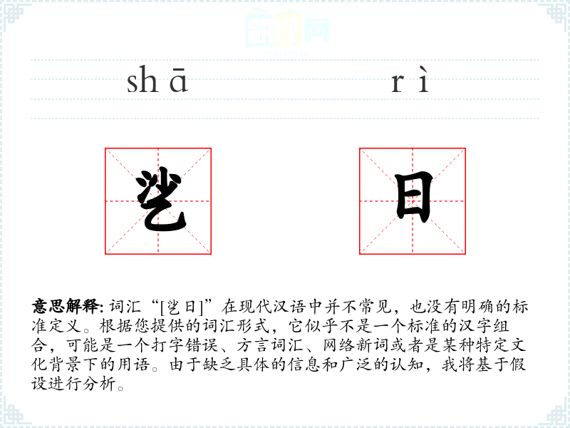 词汇“[乷日]”在现代汉语中并不常见,也没有明确的标准定义。根据您提供的词汇形式,它似乎不是一个标准的汉字组合,可能是一个打字错误、方言词汇、网络新词或者是某种特定文化背景下的用语。由于缺乏具体的信息和广泛的认知,我将基于假设进行分析。