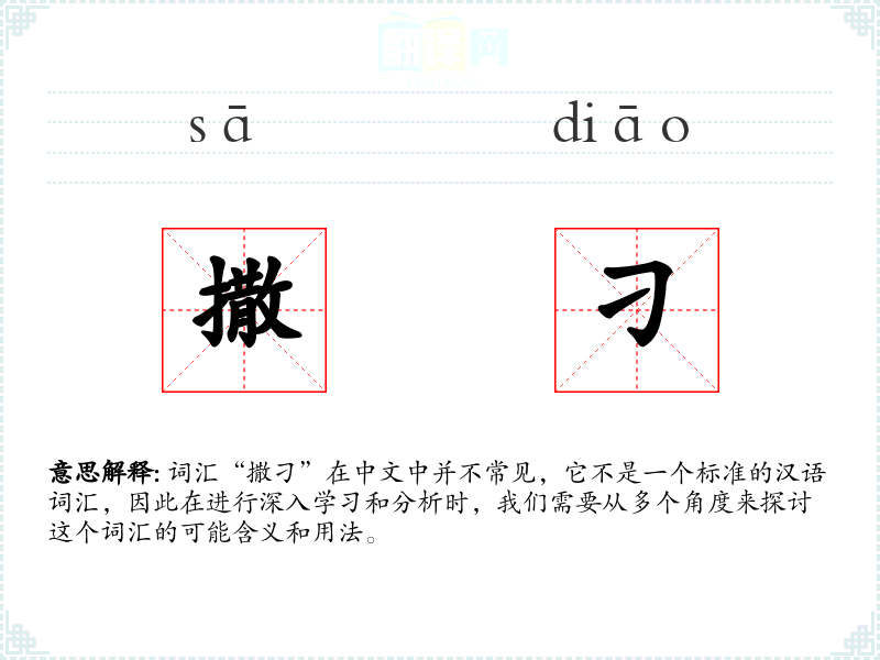 词汇“撒刁”在中文中并不常见,它不是一个标准的汉语词汇,因此在进行深入学习和分析时,我们需要从多个角度来探讨这个词汇的可能含义和用法。