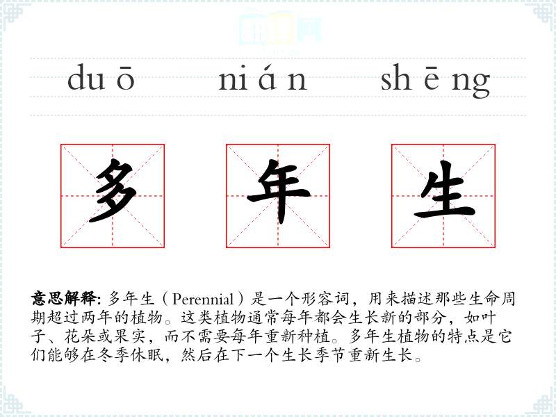 "多年生"的意思解释、多年生是什么意思由翻译网汉语词典查词提供。