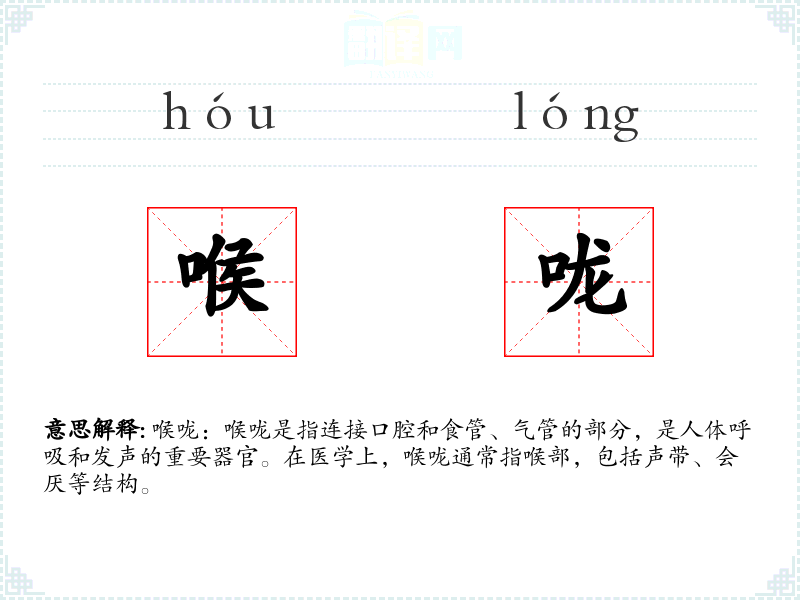 "喉咙"的意思解释、喉咙是什么意思由翻译网汉语词典查词提供。