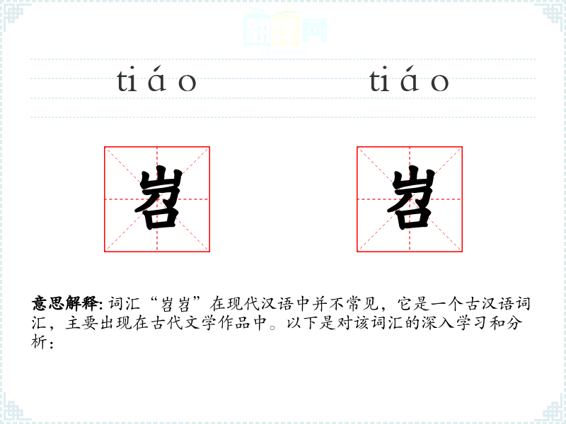 词汇“岧岧”在现代汉语中并不常见,它是一个古汉语词汇,主要出现在古代文学作品中。以下是对该词汇的深入学*和分析: