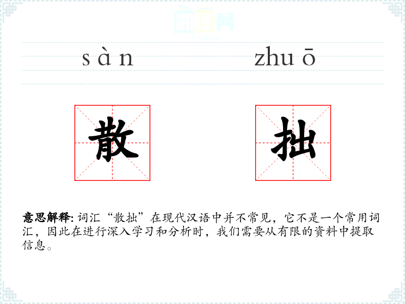 词汇“散拙”在现代汉语中并不常见,它不是一个常用词汇,因此在进行深入学习和分析时,我们需要从有限的资料中提取信息。