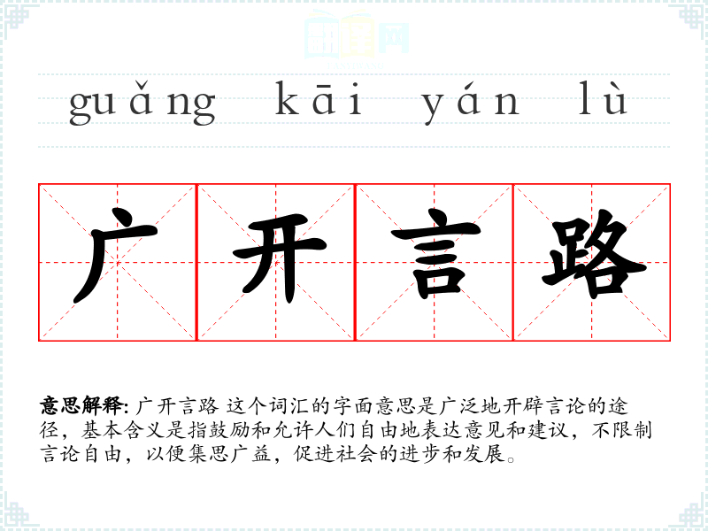 “广开言路”这个词汇源自**古代的政治理念,强调君主应该听取臣民的意见,以便更好地治理国家。随着时间的推移,这个词汇被广泛应用于各种鼓励公开讨论和意见交流的场合。