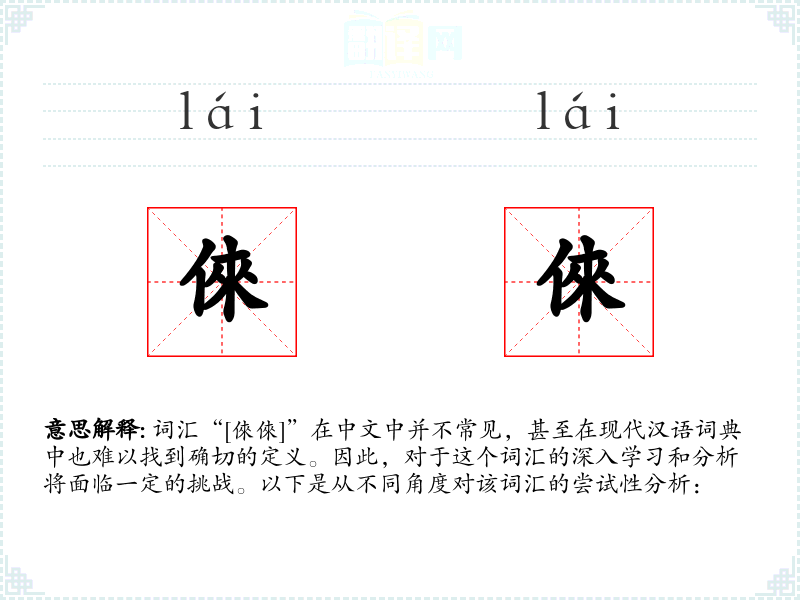 词汇“[倈倈]”在中文中并不常见,甚至在现代汉语词典中也难以找到确切的定义。因此,对于这个词汇的深入学习和分析将面临一定的挑战。以下是从不同角度对该词汇的尝试性分析: