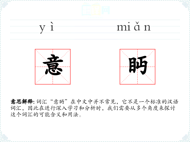 词汇“意眄”在中文中并不常见,它不是一个标准的汉语词汇,因此在进行深入学习和分析时,我们需要从多个角度来探讨这个词汇的可能含义和用法。