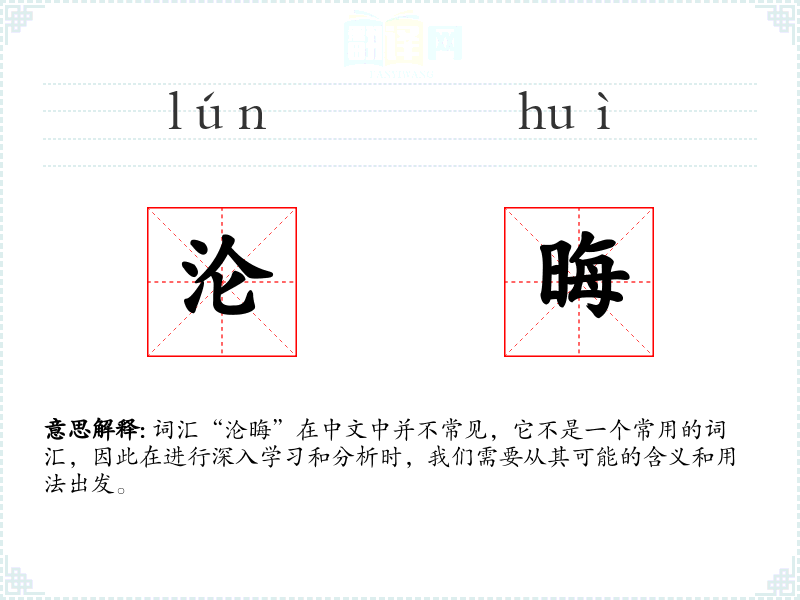 由于“沦晦”不是一个常用词汇,它在不同语言或文化中的对应词汇及其使用情况不详。
