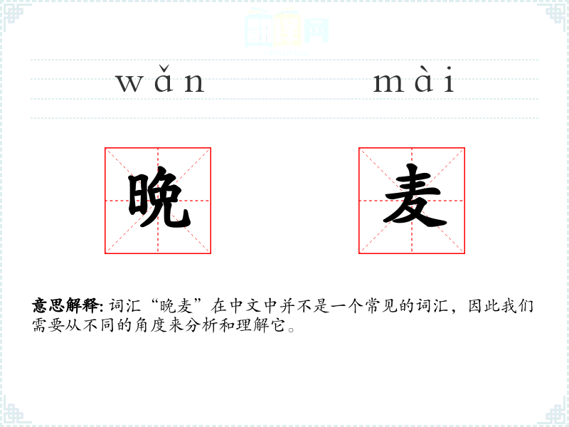 词汇“晚麦”在中文中并不是一个常见的词汇,因此我们需要从不同的角度来分析和理解它。