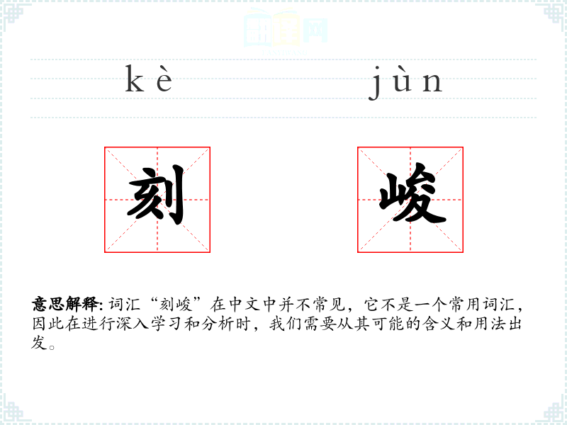 词汇“刻峻”在中文中并不常见,它不是一个常用词汇,因此在进行深入学习和分析时,我们需要从其可能的含义和用法出发。