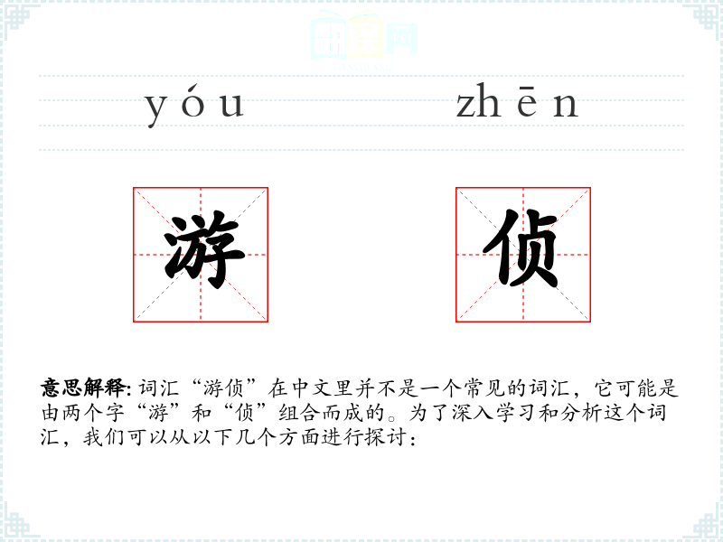 词汇“游侦”在中文里并不是一个常见的词汇,它可能是由两个字“游”和“侦”组合而成的。为了深入学习和分析这个词汇,我们可以从以下几个方面进行探讨: