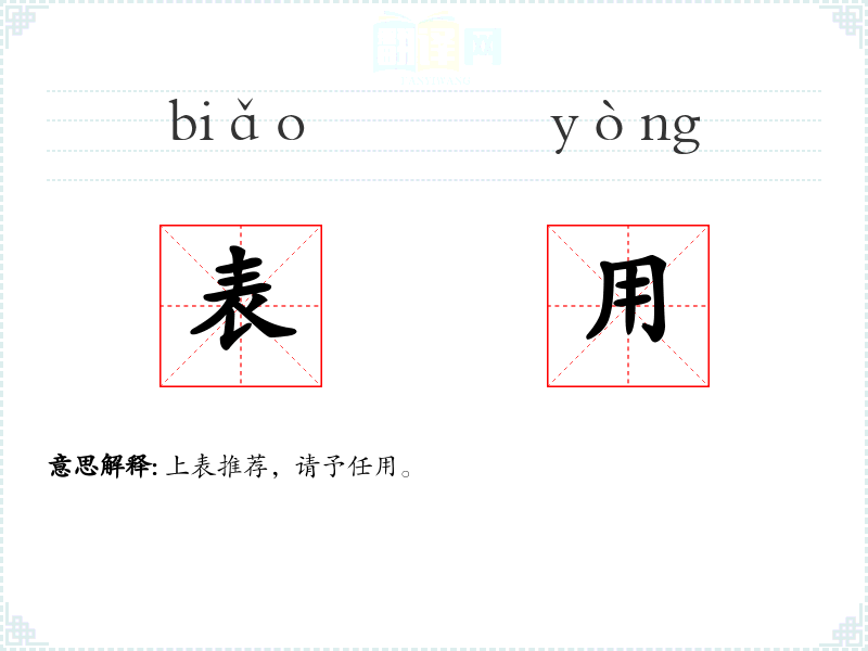 表用的分字解释