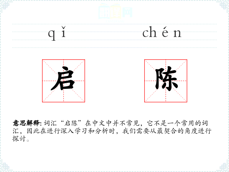 词汇“启陈”在中文中并不常见,它不是一个常用的词汇,因此在进行深入学习和分析时,我们需要从最契合的角度进行探讨。