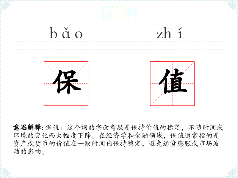 - 专业领域:在金融和经济学中,保值是一个核心概念,涉及到货币、资产和投资的管理,如“黄金被视为一种保值工具,因为它在经济动荡时期通常能保持其价值。”