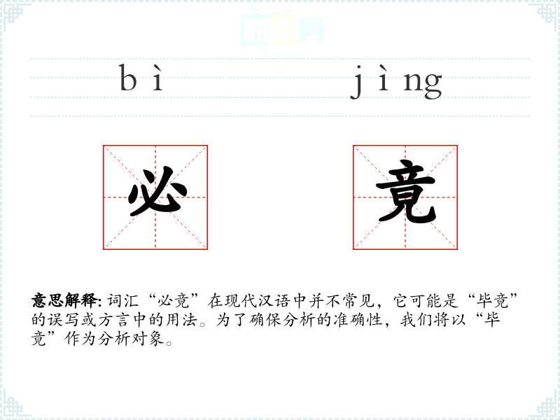 词汇“必竟”在现代汉语中并不常见,它可能是“毕竟”的误写或方言中的用法。为了确保分析的准确性,我们将以“毕竟”作为分析对象。