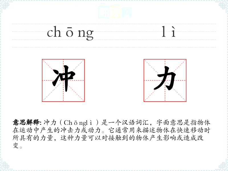 在英语中,“冲力”可以对应为“momentum”或“impact force”,这些词汇在不同文化和语言中都有类似的含义和应用。