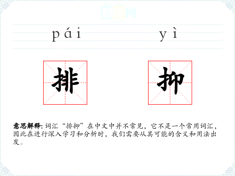 词汇“排抑”在中文中并不常见,它不是一个常用词汇,因此在进行深入学习和分析时,我们需要从其可能的含义和用法出发。