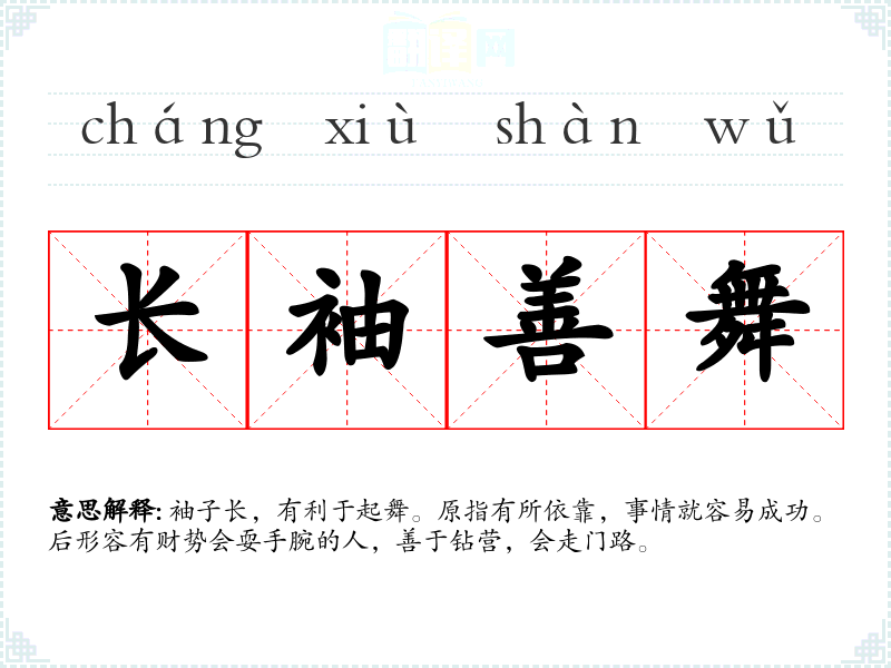 袖子长,有利于起舞。原指有所依靠,事情就容易成功。后形容有财势会