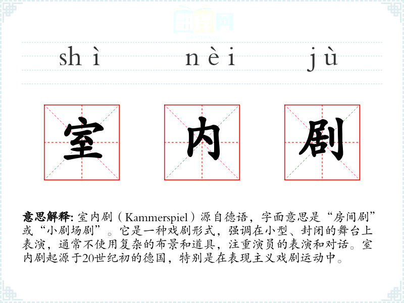 - 专业领域:在戏剧学和电影学中,室内剧是一种特定的戏剧形式,研究其结构、风格和表现手法。