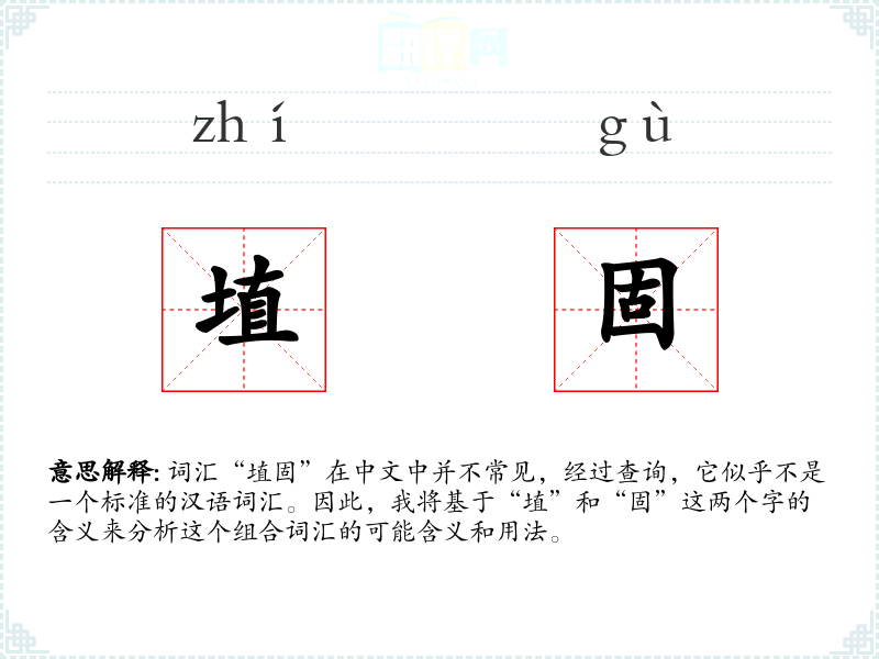 词汇“埴固”在中文中并不常见,经过查询,它似乎不是一个标准的汉语词汇。因此,我将基于“埴”和“固”这两个字的含义来分析这个组合词汇的可能含义和用法。