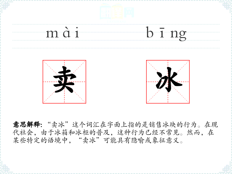 "卖冰"的意思解释、卖冰是什么意思由翻译网汉语词典查词提供。