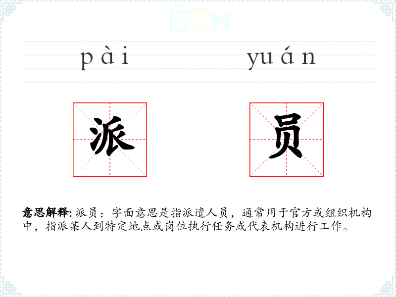 派员一词源于汉语,由“派”和“员”两个字组成。在古代汉语中,“派”有分派、派遣的意思,“员”则指人员。随着时间的推移,这个词在现代汉语中被广泛用于描述官方或组织的派遣行为。