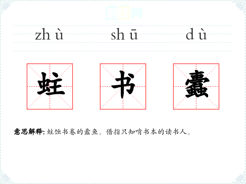 蛀蚀书卷的蠹鱼。借指只知啃书本的读书人。
