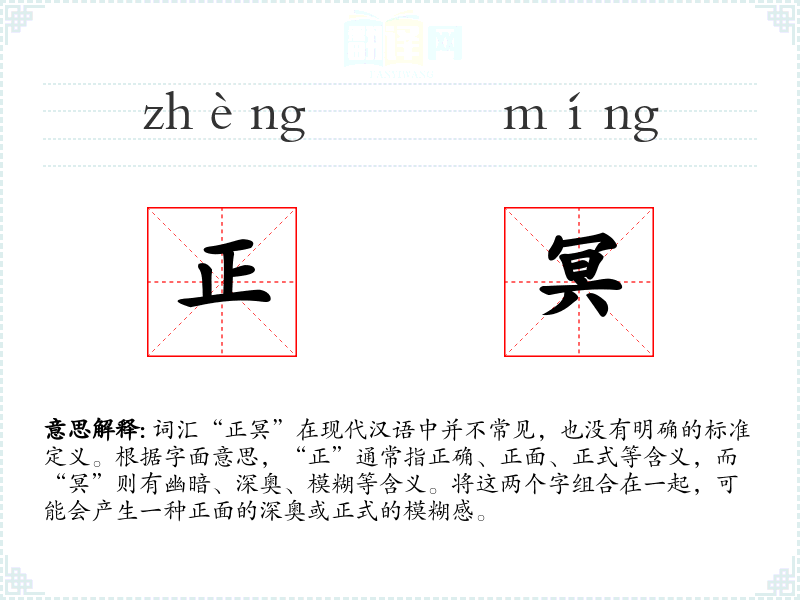 由于“正冥”不是一个标准词汇,我们可以尝试解释其可能的含义: