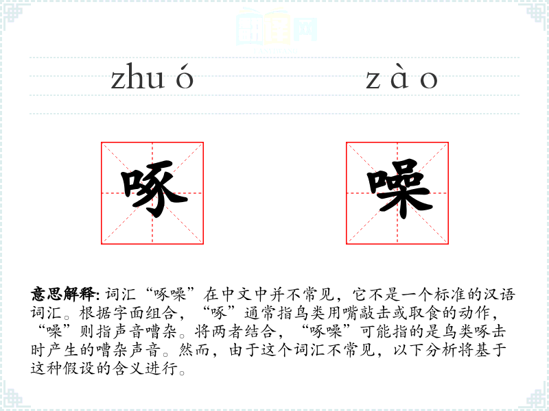 “啄噪”可能指的是鸟类在啄食或啄击物体时产生的嘈杂声音。