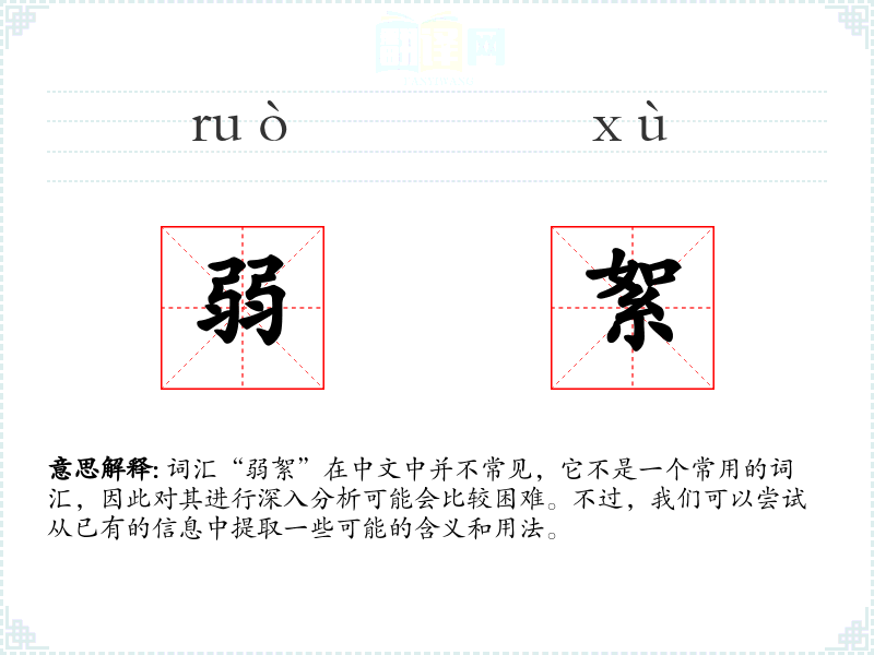词汇“弱絮”在中文中并不常见,它不是一个常用的词汇,因此对其进行深入分析可能会比较困难。不过,我们可以尝试从已有的信息中提取一些可能的含义和用法。