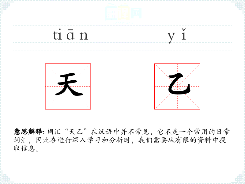 词汇“天乙”在汉语中并不常见,它不是一个常用的日常词汇,因此在进行深入学*和分析时,我们需要从有限的资料中提取信息。
