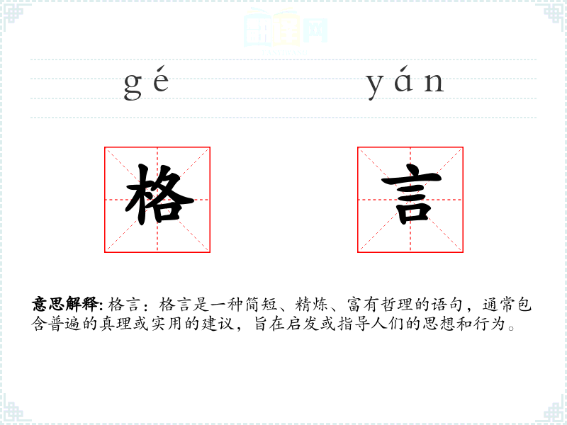 "格言"的意思解释、格言是什么意思由翻译网汉语词典查词提供。