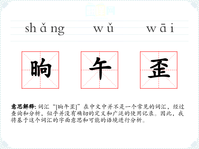 词汇“[晌午歪]”在中文中并不是一个常见的词汇,经过查询和分析,似乎并没有确切的定义和广泛的使用记录。因此,我将基于这个词汇的字面意思和可能的语境进行分析。
