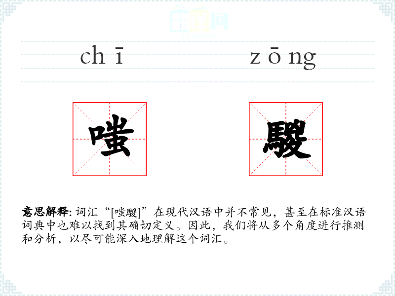 词汇“[嗤騣]”在现代汉语中并不常见,甚至在标准汉语词典中也难以找到其确切定义。因此,我们将从多个角度进行推测和分析,以尽可能深入地理解这个词汇。