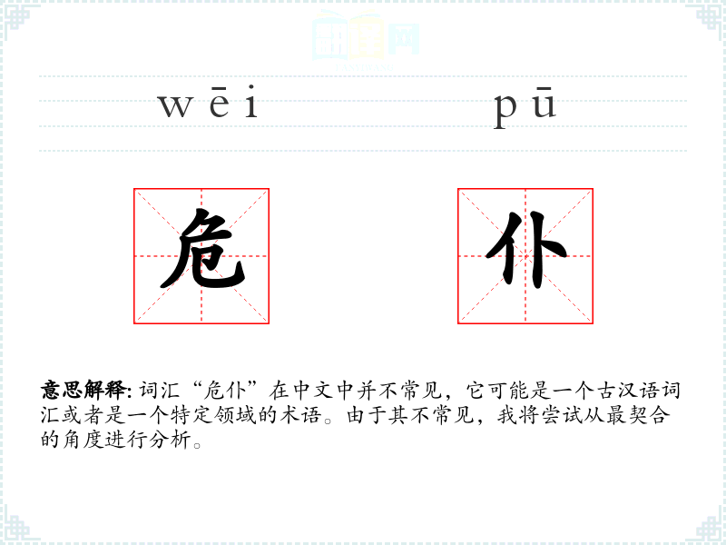 词汇“危仆”在中文中并不常见,它可能是一个古汉语词汇或者是一个特定领域的术语。由于其不常见,我将尝试从最契合的角度进行分析。