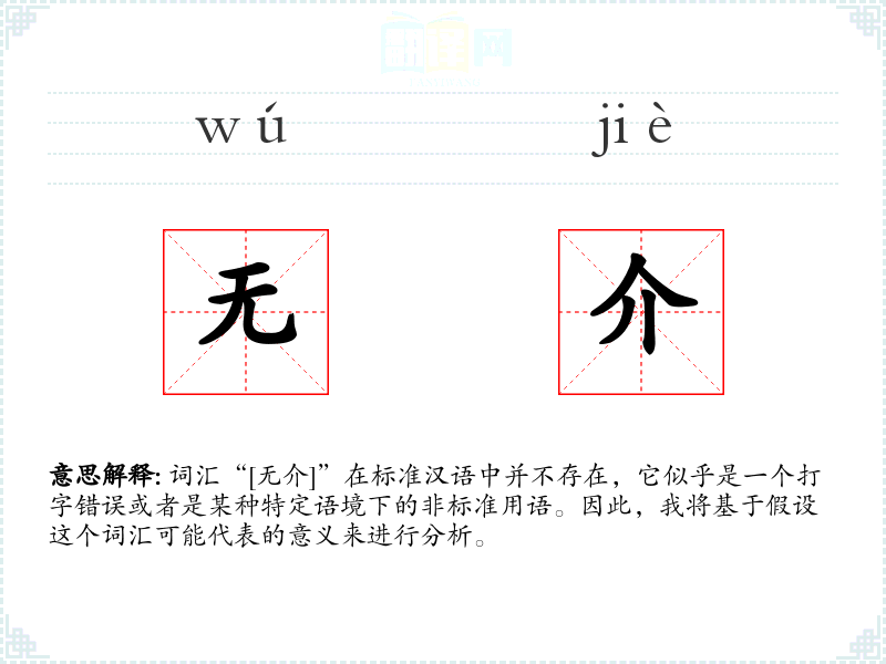 词汇“[无介]”在标准汉语中并不存在,它似乎是一个打字错误或者是某种特定语境下的非标准用语。因此,我将基于假设这个词汇可能代表的意义来进行分析。