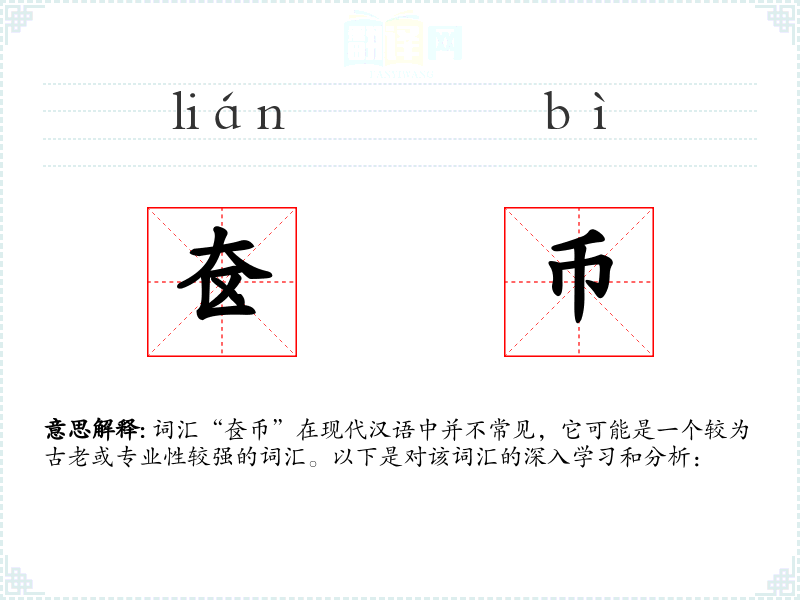 词汇“奁币”在现代汉语中并不常见,它可能是一个较为古老或专业性较强的词汇。以下是对该词汇的深入学*和分析: