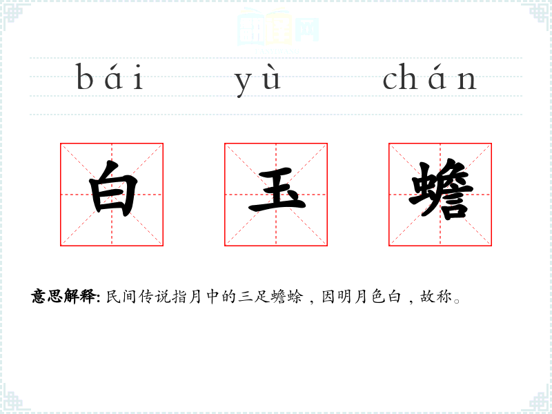民间传说指月中的三足蟾蜍﹐因明月色白﹐故称。