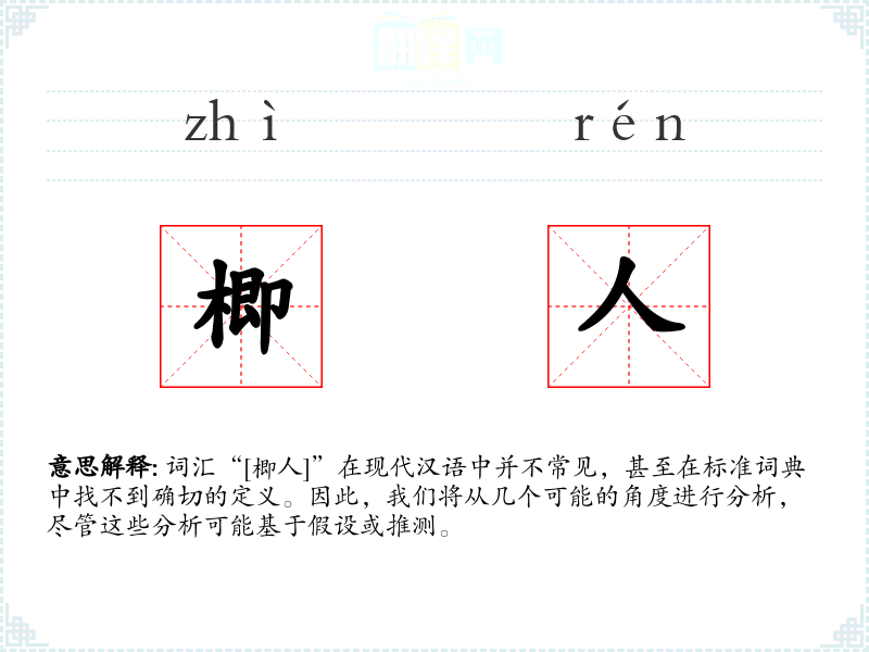 词汇“[楖人]”在现代汉语中并不常见,甚至在标准词典中找不到确切的定义。因此,我们将从几个可能的角度进行分析,尽管这些分析可能基于假设或推测。