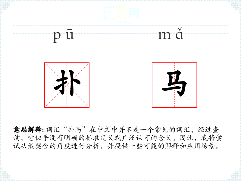 由于“扑马”不是一个标准词汇,我们可以尝试从字面意思来解释: