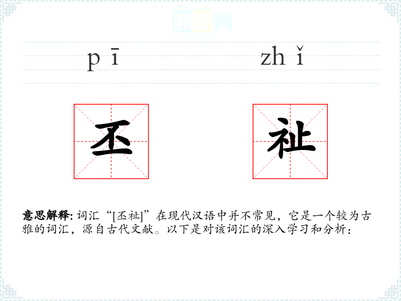 词汇“[丕祉]”在现代汉语中并不常见,它是一个较为古雅的词汇,源自古代文献。以下是对该词汇的深入学*和分析:
