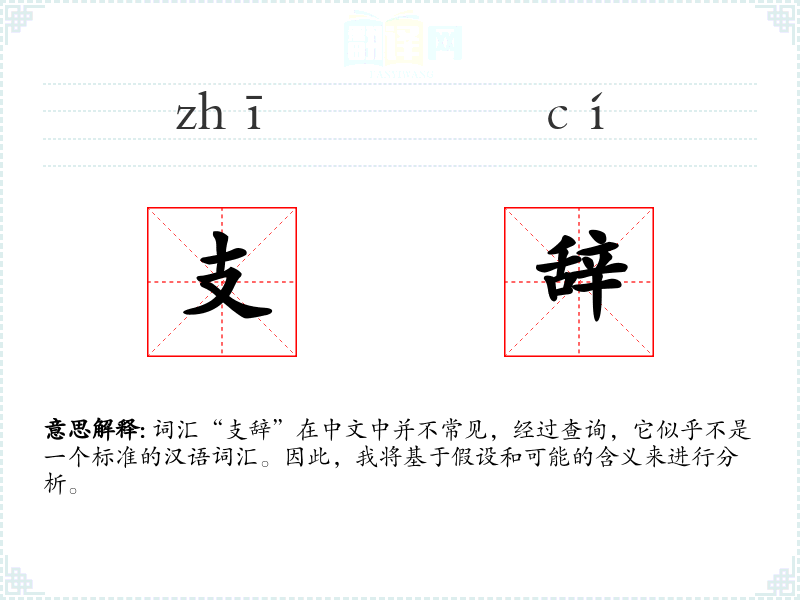 词汇“支辞”在中文中并不常见,经过查询,它似乎不是一个标准的汉语词汇。因此,我将基于假设和可能的含义来进行分析。