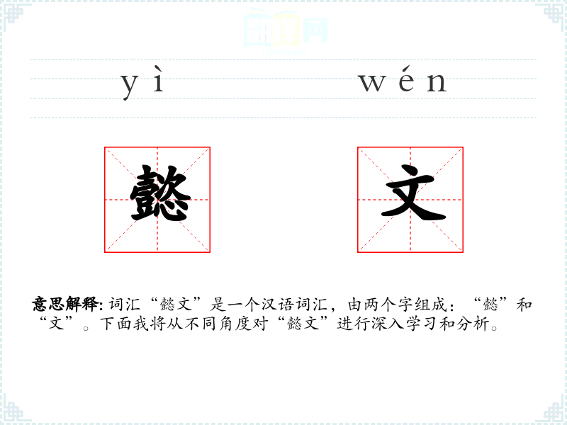 词汇“懿文”是一个汉语词汇,由两个字组成:“懿”和“文”。下面我将从不同角度对“懿文”进行深入学*和分析。