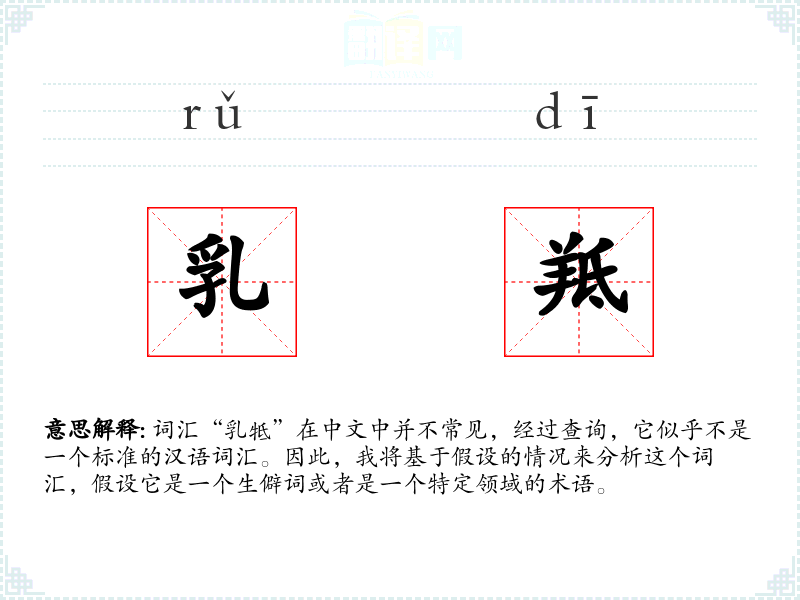 词汇“乳牴”在中文中并不常见,经过查询,它似乎不是一个标准的汉语词汇。因此,我将基于假设的情况来分析这个词汇,假设它是一个生僻词或者是一个特定领域的术语。