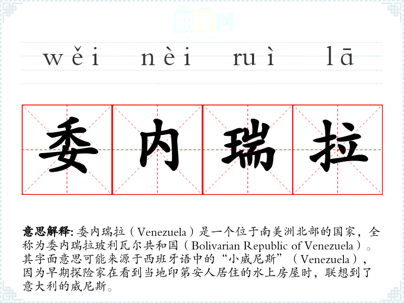 "委内瑞拉"的意思解释、委内瑞拉是什么意思由翻译网汉语词典查词提供。